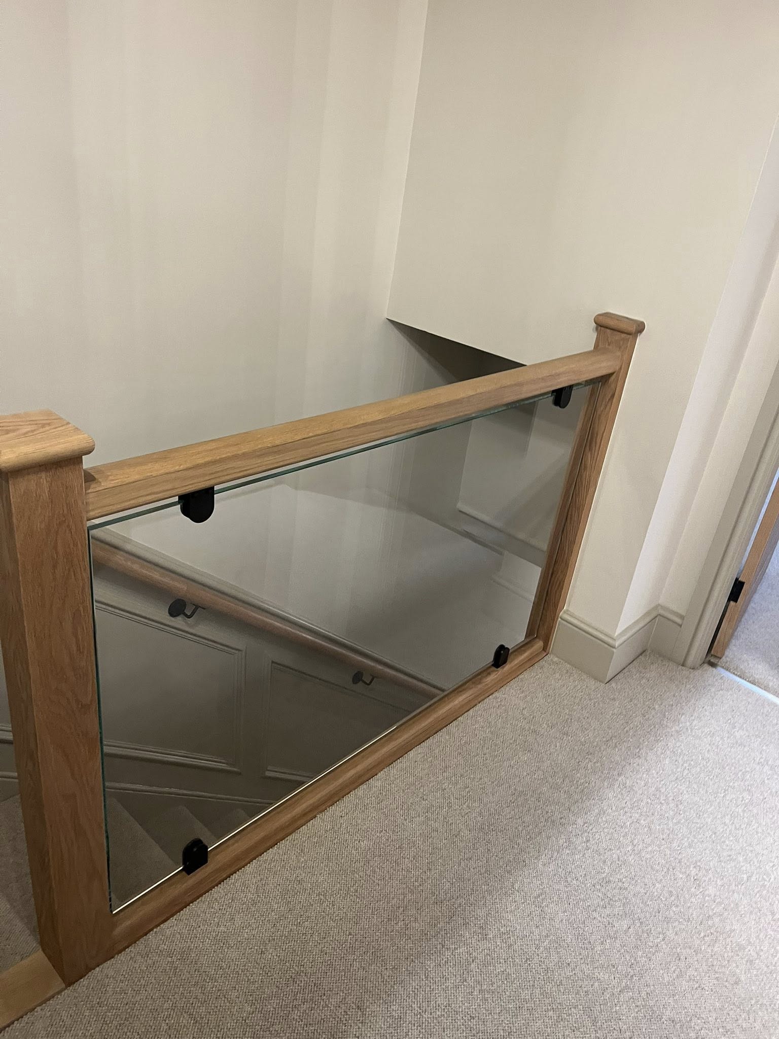 Works included a bespoke kitchen installation with custom cabinetry and worktops, fitted bedroom furniture and wardrobes, feature wall panelling, and detailed staircase joinery. The staircase was enhanced with bespoke panelling, handrails and glass balustrade elements, creating a clean, modern look while maintaining practicality and safety.